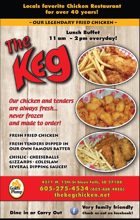 Web jakarta, bogor, tangerang, bekasi, banten, cianjur, sukabumi, tasikmalaya, ciamis, purwakarta, garut, majalengka, pangandaran, subang Served 11:00 to 3:30 monday through friday. Our customers at the keg chicken have come to expect some of the best american food in sioux falls.