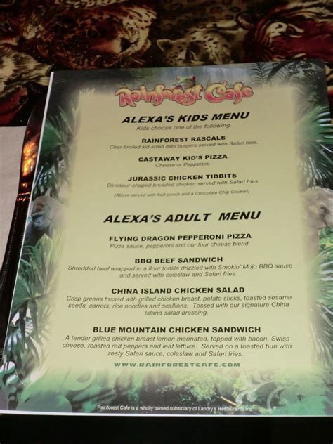 Menu du Rainforest Café au Disney Village from www.wish2dream.com