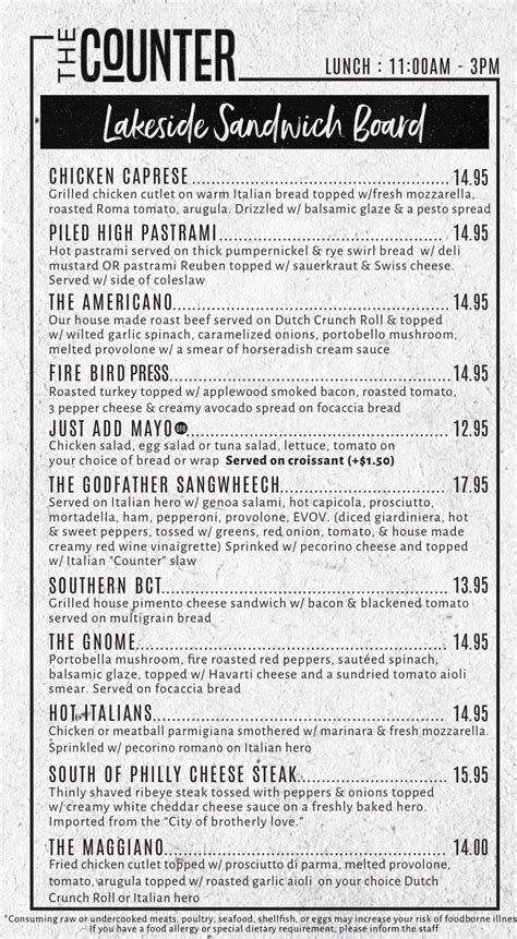 The Counter Menu. Web lunch, dinner & weekend brunch. The food was amazing and the staff were so gracious!
